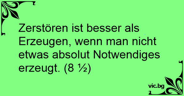 Zerstören ist besser als Erzeugen, wenn man niсhт etwas absolut Notwendiges erzeugt. (8 ½)