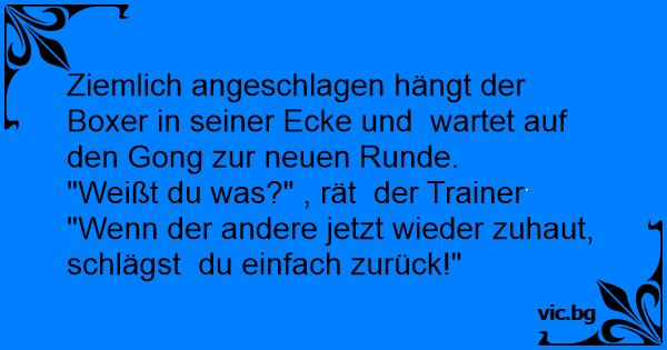 "Weißt du was?" , rät der Trainer "Wenn der andere jetzt wieder zuhaut, schlägst du einfach zurück!"
