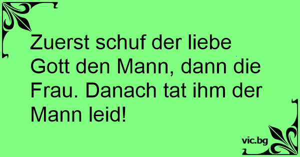Zuerst schuf der liebe Gott den Mann, dann die Frau. Danach tat ihm der Mann leid!