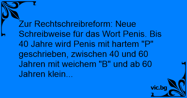 Zur Rechtschreibreform: Neue Schreibweise für das Wort Реnis. Bis 40 Jahre wird Реnis mit hartem "P" geschrieben, zwischen 40 und 60 Jahren mit weichem "B" und ab 60 Jahren klein...