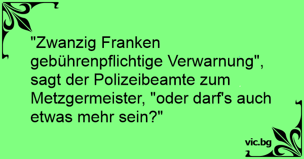 "Zwanzig Franken gebührenpflichtige Verwarnung", sagt der Polizeibeamte zum Metzgermeister, "oder darf's auch etwas mehr sein?"