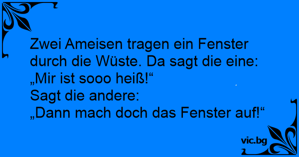 Zwei Ameisen tragen ein Fenster durch die Wüste. Da sagt die eine: