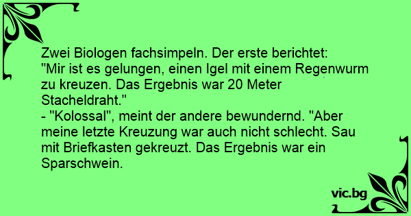 Zwei Biologen fachsimpeln. Der erste berichtet: