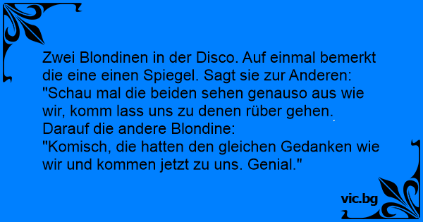 Zwei Blondinen in der Disco. Auf einmal bemerkt die eine einen Spiegel. Sagt sie zur Anderen: