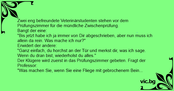 Der Klügere wird zuerst in das Prüfungszimmer gebeten. Fragt der Professor: