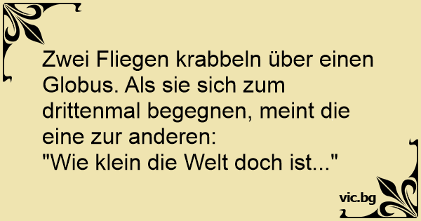 Zwei Fliegen krabbeln über einen Globus. Als sie sich zum drittenmal begegnen, meint die eine zur anderen: