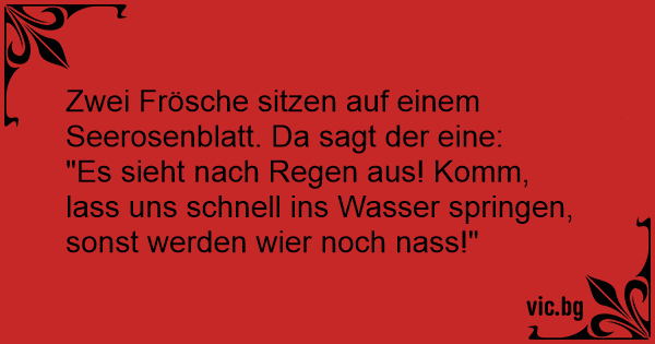 Zwei Frösche sitzen auf einem Seerosenblatt. Da sagt der eine: