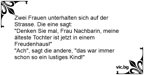 "Denken Sie mal, Frau Nachbarin, meine älteste Tochter ist jetzt in einem Freudenhaus!"