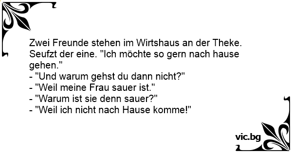 - "Weil meine Frau sauer ist."