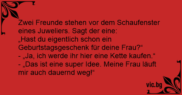 „Hast du eigentlich schon ein Geburtstagsgeschenk für deine Frau?“