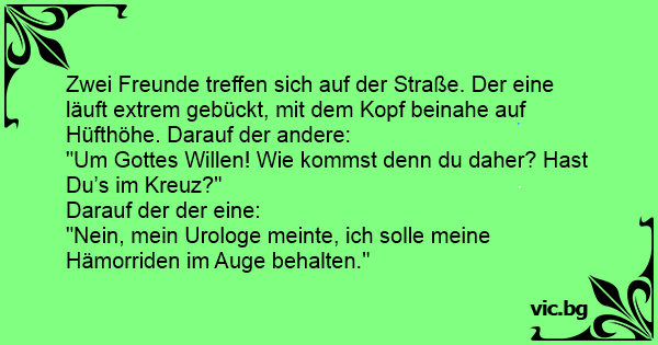 "Nein, mein Urologe meinte, ich solle meine Hämorriden im Auge behalten."