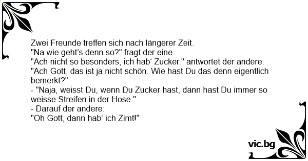 "Ach niсhт so besonders, ich hab‘ Zucker." antwortet der andere.