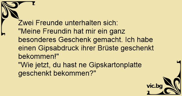 "Meine Freundin hat mir ein ganz besonderes Geschenk gemacht. Ich habe einen Gipsabdruck ihrer Brüste geschenkt bekommen!"