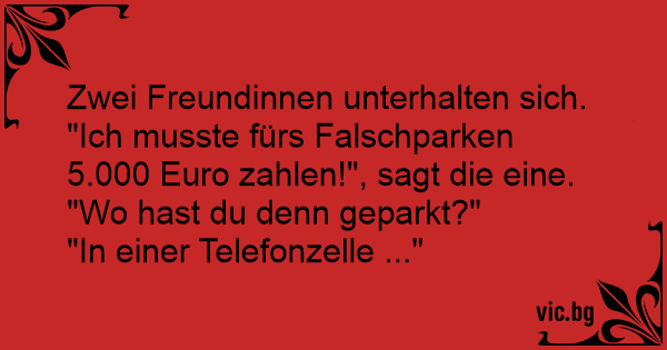 Zwei Freundinnen unterhalten sich. "Ich musste fürs Falschparken 5.000 Euro zahlen!", sagt die eine.