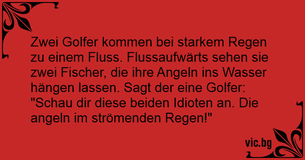 Zwei Golfer kommen bei starkem Regen zu einem Fluss. Flussaufwärts sehen sie zwei Fischer, die ihre Angeln ins Wasser hängen lassen. Sagt der eine Golfer: