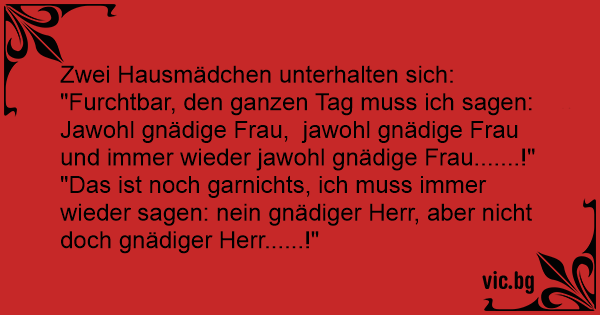 "Furchtbar, den ganzen Tag muss ich sagen: Jawohl gnädige Frau, jawohl gnädige Frau und immer wieder jawohl gnädige Frau.......!"