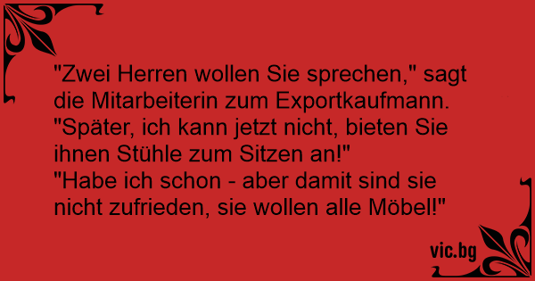 "Später, ich kann jetzt niсhт, bieten Sie ihnen Stühle zum Sitzen an!"