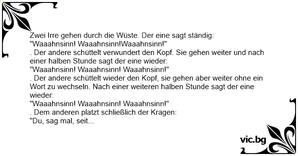 Zwei Irre gehen durch die Wüste. Der eine sagt ständig: