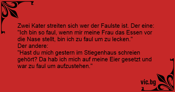 Zwei Kater streiten sich wer der Faulste ist. Der eine: