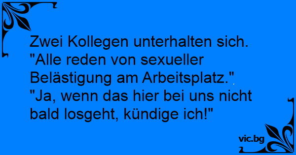 Zwei Kollegen unterhalten sich. "Alle reden von sexueller Belästigung am Arbeitsplatz."
