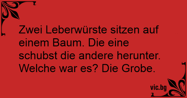Zwei Leberwürste sitzen auf einem Baum. Die eine schubst die andere herunter. Welche war es? Die Grobe.
