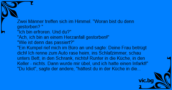 Zwei Männer treffen sich im Himmel. "Woran bist du denn gestorben? "