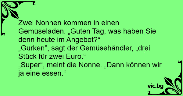 Zwei Nonnen kommen in einen Gemüseladen. „Guten Tag, was haben Sie denn heute im Angebot?“
