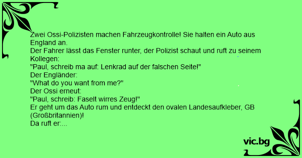Zwei Ossi-Polizisten machen Fahrzeugkontrolle! Sie halten ein Auto aus England an.