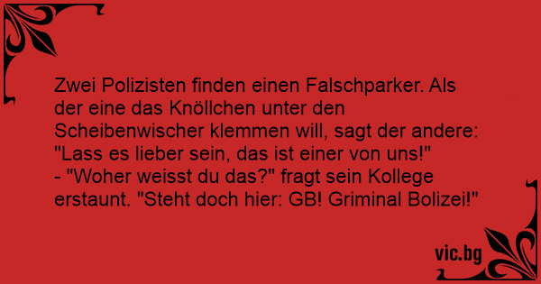 - "Woher weisst du das?" fragt sein Kollege erstaunt. "Steht doch hier: GB! Griminal Bolizei!"