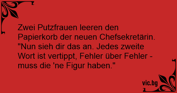 Zwei Putzfrauen leeren den Papierkorb der neuen Chefsekretärin.