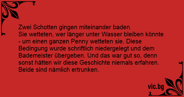 Sie wetteten, wer länger unter Wasser bleiben könnte - um einen ganzen Penny wetteten sie. Diese Bedingung wurde schriftlich niedergelegt und dem Bademeister übergeben. Und das war gut so, denn sonst hätten wir diese Geschichte niemals erfahren.