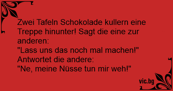 Zwei Tafeln Schokolade kullern eine Treppe hinunter! Sagt die eine zur anderen: