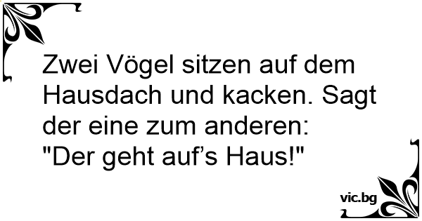 Zwei Vögel sitzen auf dem Hausdach und каскеn. Sagt der eine zum anderen: