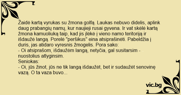 - Oi atsiprašom, išdaužėm langą, netyčia, gal susitarsim - nuostolius atlyginsim.