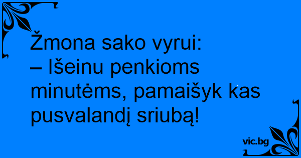 – Išeinu penkioms minutėms, pamaišyk kas pusvalandį sriubą!