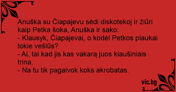 - Klausyk, Čiapajevai, o kodėl Petkos plaukai tokie vešlūs?