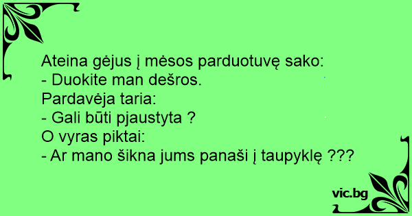 Ateina gėjus į mėsos parduotuvę sako: