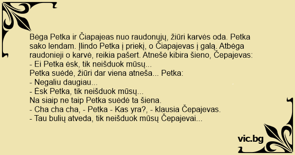 - Cha cha cha, - Petka - Kas yra?, - klausia Čepajevas.