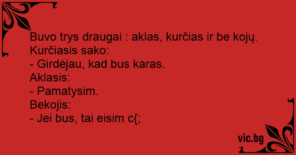 Buvo trys draugai : aklas, kurčias ir be kojų.