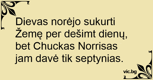 Dievas norėjo sukurti Žemę per dešimt dienų, bet Chuckas Norrisas jam davė tik septynias.