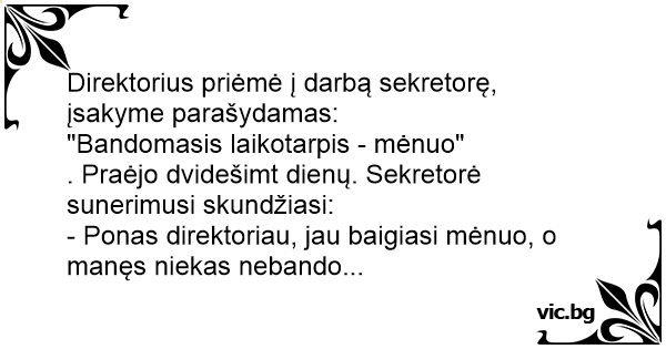 - Ponas direktoriau, jau baigiasi mėnuo, o manęs niekas nebando...