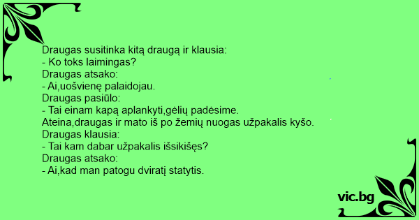 Draugas susitinka kitą draugą ir klausia: