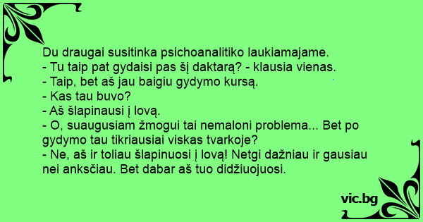 Du draugai susitinka psichoanalitiko laukiamajame.