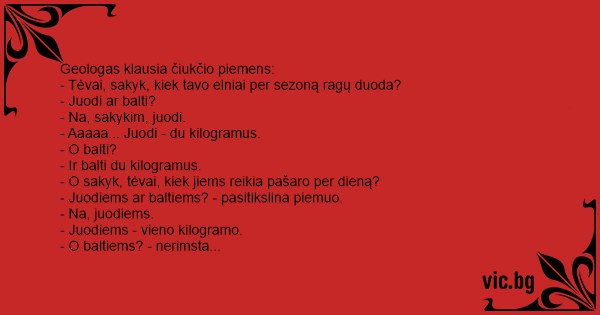 - Naaa... Taigi juodi tai mano elniai, - atsako čiukčia.
