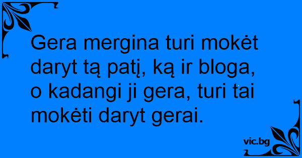Gera mergina turi mokėt daryt tą patį, ką ir bloga, o kadangi ji gera, turi tai mokėti daryt gerai.