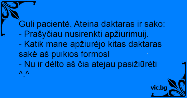 - Katik mane apžiurėjo kitas daktaras sakė aš puikios formos!