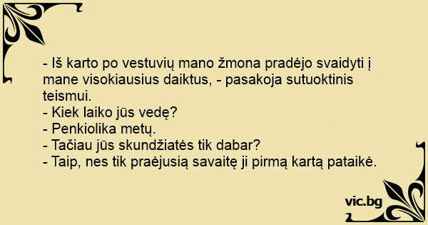 - Iš karto po vestuvių mano žmona pradėjo svaidyti į mane visokiausius daiktus, - pasakoja sutuoktinis teismui.