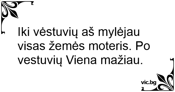 Iki vėstuvių aš mylėjau visas žemės moteris. Po vestuvių Viena mažiau.