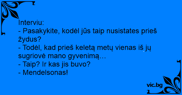 - Pasakykite, kodėl jūs taip nusistates prieš žydus?