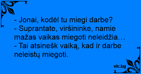 - Jonai, kodėl tu miegi darbe?